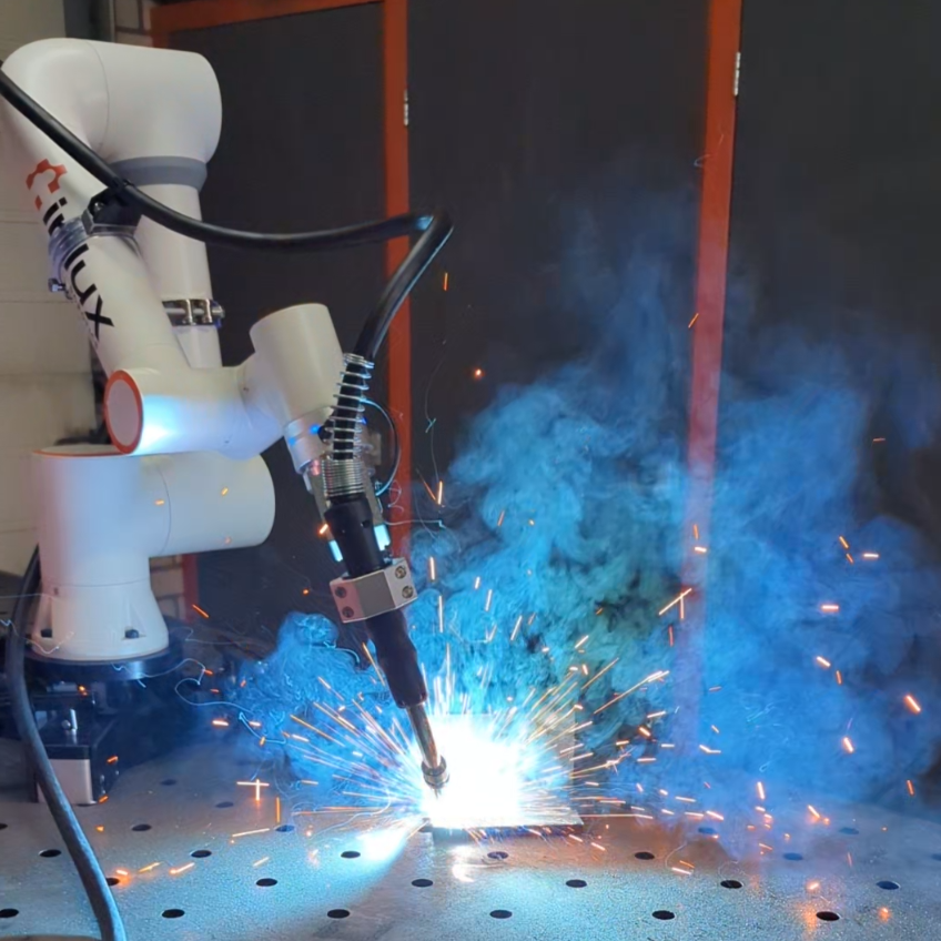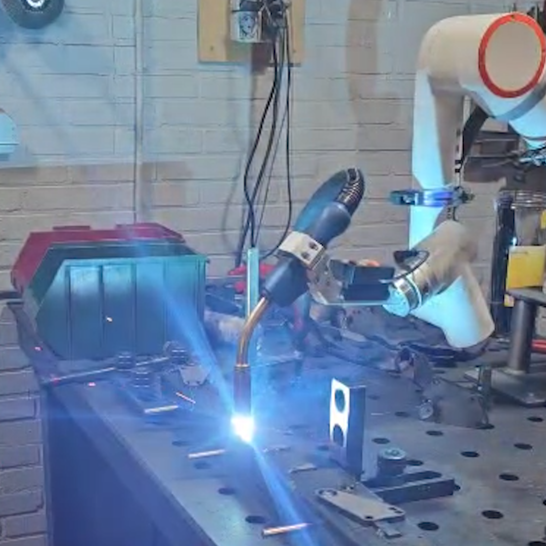 VideoA cobot placed on a magnetic base, this makes the entire welding setup mobile.